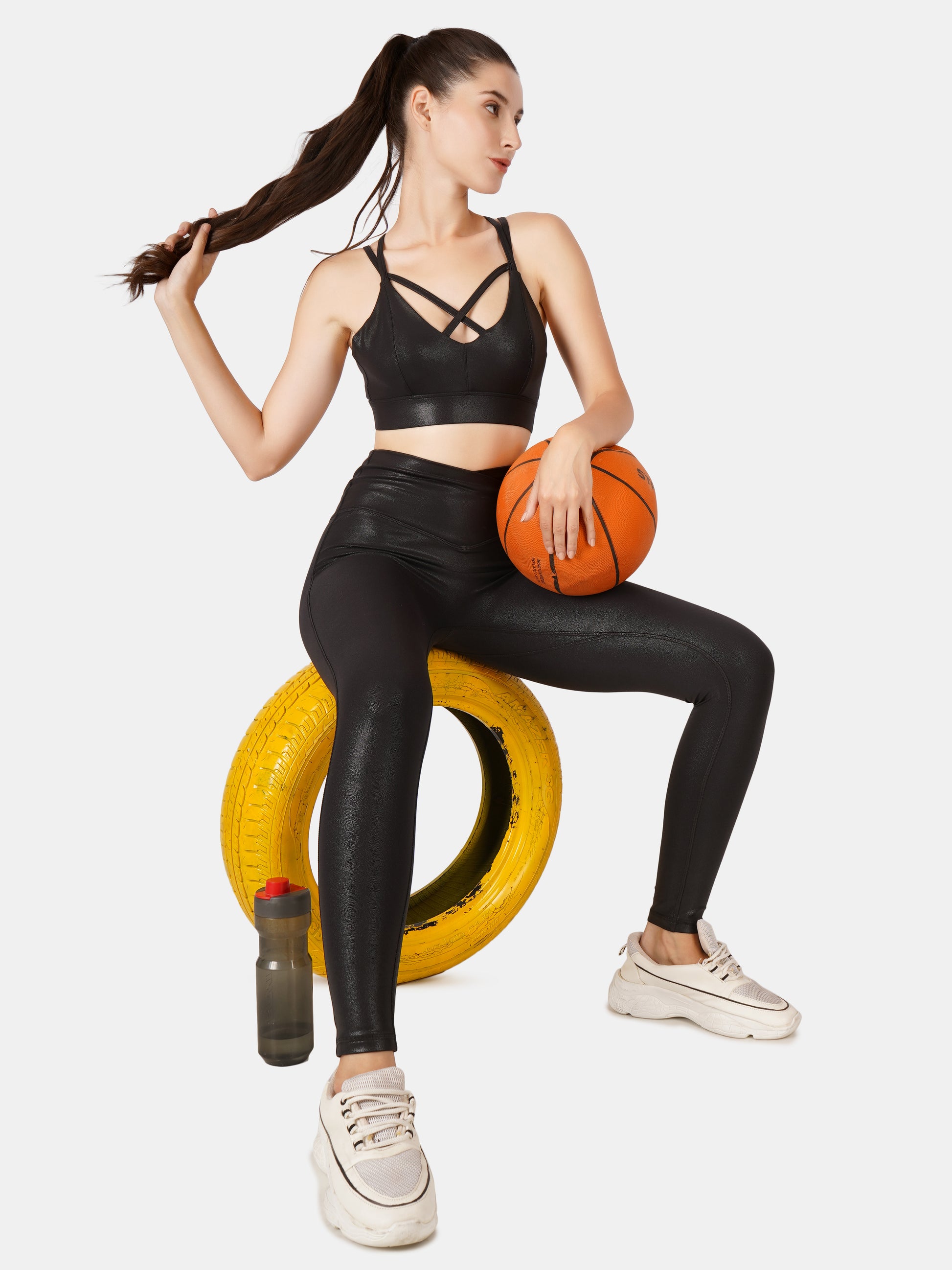 The SVELTE Bra offers a sleek design and powerful fit with striking strappy front and back panels, while the SCULPT Leggings feature a flattering crossover waistband, seamless front, and back-lifting contour seams.